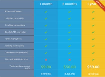 加速您的生活,保护您的网速。根据速度和 IP 数量,套餐从每月 13 美元到 100 美元不等。